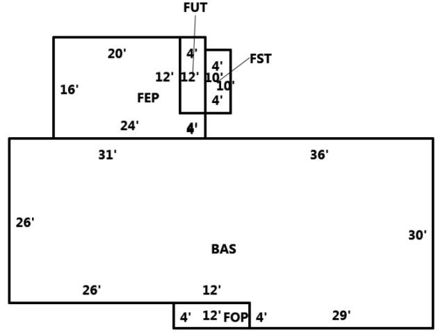 BUILDING DIMENSIONS BAS=W36W31S26E26E12S4E29N30Area:1858;FEP=N4W4N12W20S16E24Area:336;FST=E4N10W4S10Area:40;FUT=N12W4S12E4Area:48;FOP=S4E12N N4W12Area:48;TotalArea:2330