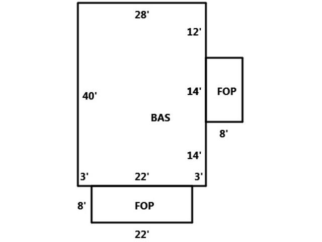 BUILDING DIMENSIONS BAS=W28S40E3E22E3N14N14N12Area:1120;FOP=E22S8W22N8Area:176;FOP=N14E8S14W8Area:112;TotalArea:1408