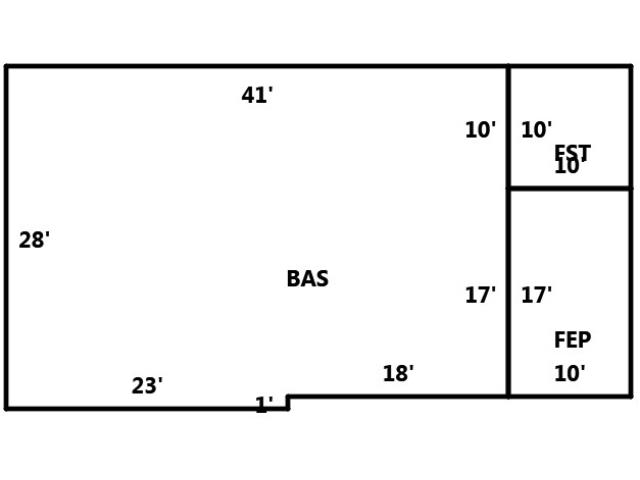 BUILDING DIMENSIONS BAS=W41S28E23N1E18N17N10Area:1130;FEP=E10N17W10S17Area:170;FST=E10N10W10S10Area:100;TotalArea:1400