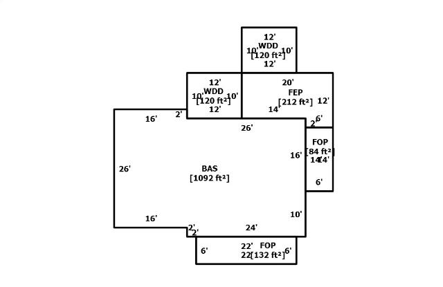 BUILDING DIMENSIONS BAS=W16S26E16S2E2E24N10N16W26N2Area:1,092.0;FOP=S6E22N6W22Area:132.0;FUS=Area:416.0;WDD=N10E12S10W12Area:120.0;FEP=N10E2 20S12W6N2W14Area:212.0;WDD=N10E12S10W12Area:120.0;FOP=S14W6N14E6Area:84.0;TotalArea:2,176.0