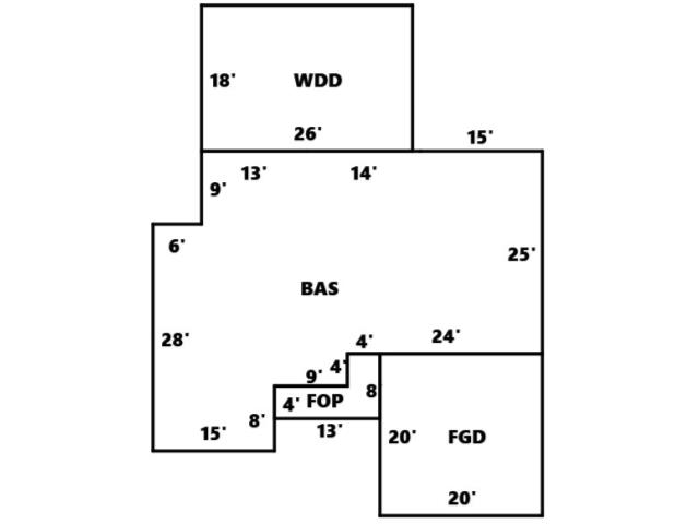 BUILDING DIMENSIONS BAS=E13E14E15S25W24S4W9S8W15N28E6N9Area:1362;FOP=E4S8W13N4E9N4Area:68;FGD=E20S20W20N20Area:400;WDD=N18E26S18W26Area:468; ;TotalArea:2298