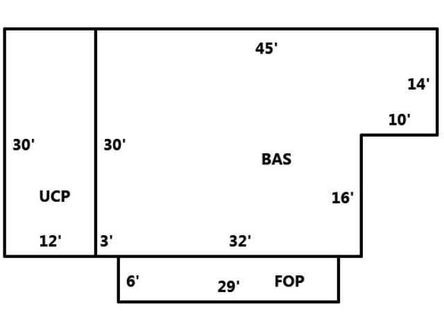 BUILDING DIMENSIONS BAS=S30E3E32N16E10N14W45Area:1190;FOP=S6E29N6W29Area:174;UCP=W12S30E12N30Area:360;TotalArea:1724