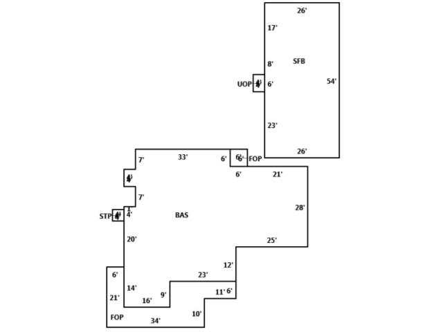 BUILDING DIMENSIONS BAS=W21W6N6W33S7W4S6E4S7W4S1S20S14E16N9E23N12E25N28Area:2570;FOP=W6N6E6S6Area:36;STP=W4S4E4N4Area:16;FOP=W6S21E34N10E11N N6W23S9W16N14Area:496;SFB=S8S6S23E26N54W26S17Area:1404;UOP=S6W4N6E4Area:24;FUS=Area:1506;TotalArea:6052