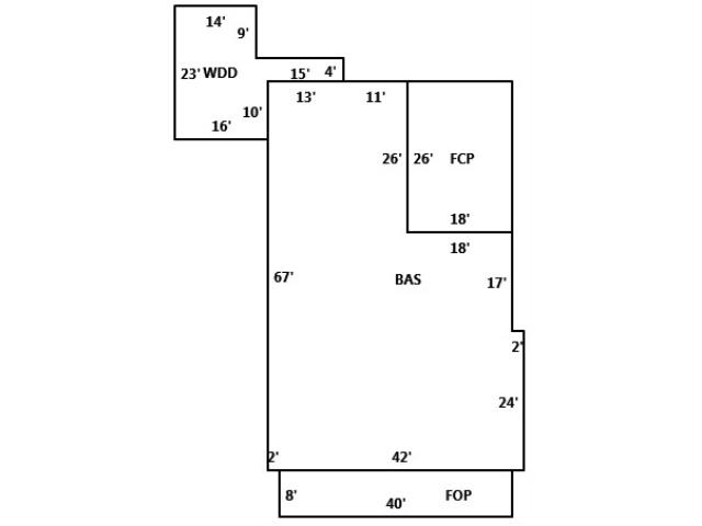 BUILDING DIMENSIONS BAS=W11W13S67E2E42N24W2N17W18N26Area:2394;WDD=N4W15N9W14S23E16N10E13Area:402;FOP=S8E40N8W40Area:320;FCP=N26W18S26E18Area a:468;TotalArea:3584