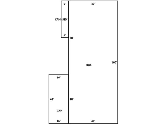 BUILDING DIMENSIONS BAS=W40S60S40E40N100Area:4000;CAN=W6S30E6N30Area:180;CAN=W16S40E16N40Area:640;TotalArea:4820