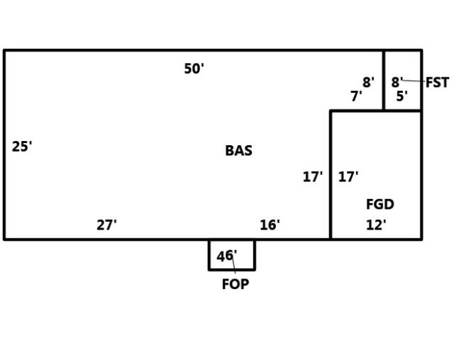 BUILDING DIMENSIONS BAS=W50S25E27E16N17E7N8Area:1131;FOP=S4E6N4W6Area:24;FGD=E12N17W12S17Area:204;FST=E5N8W5S8Area:40;TotalArea:1399