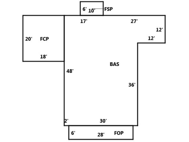 BUILDING DIMENSIONS BAS=W27W17S48E2E30N36E12N12Area:1680;FSP=N6W10S6E10Area:60;FCP=W18S20E18N20Area:360;FOP=S6E28N6W28Area:168;TotalArea:226 68