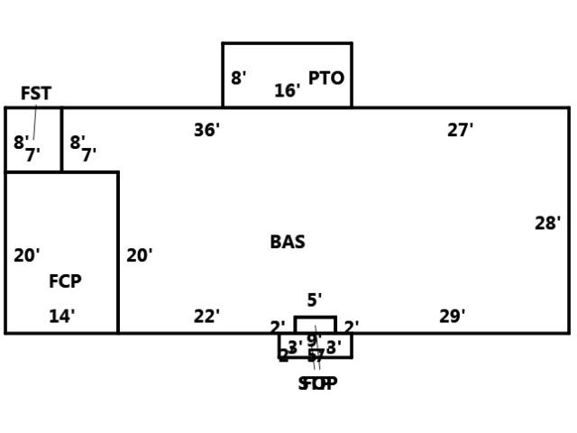 BUILDING DIMENSIONS BAS=W27W36S8E7S20E22N2E5S2E29N28Area:1614;PTO=N8W16S8E16Area:128;FST=W7S8E7N8Area:56;FCP=W7S20E14N20W7Area:280;FOP=N2E5S S2W5Area:10;STP=W2S3E9N3W7Area:27;TotalArea:2115