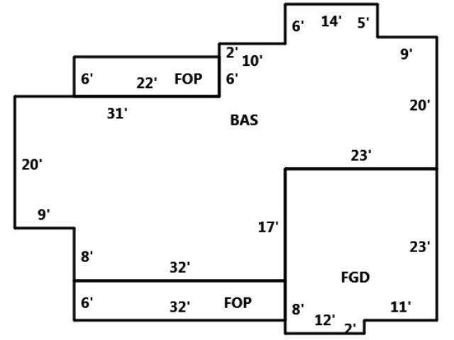 BUILDING DIMENSIONS BAS=W9N5W14S6W10S2S6W31S20E9S8E32N17E23N20Area:1686;FOP=W22S6E22N6Area:132;FOP=S6E32N6W32Area:192;FGD=S8E12N2E11N23W23S1 17Area:553;TotalArea:2563