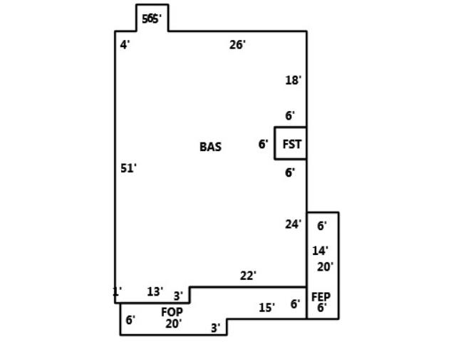 BUILDING DIMENSIONS BAS=W26N5W6S5W4S51E1E13N3E22N24W6N6E6N18Area:1764;FOP=S6E20N3E15N6W22S3W13Area:231;FEP=S6E6N20W6S14Area:120;FST=W6N6E6S6 6Area:36;TotalArea:2151