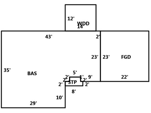BUILDING DIMENSIONS BAS=W2W43S35E29N10N2E2N2E5S2E9N23Area:1373;WDD=N12W14S12E14Area:168;STP=N2E2N2E5S2E1S2W8Area:26;FGD=E22N23W22S23Area:506 6;TotalArea:2073
