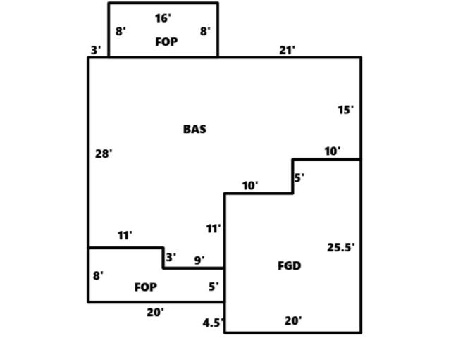 BUILDING DIMENSIONS BAS=W21W16W3S28E11S3E9N11E10N5E10N15Area:937;FOP=S8E20N5W9N3W11Area:133;FOP=N8W16S8E16Area:128;FGD=E10N5E10S25.5W20N4.5N N5N11Area:460;FUS=Area:1358;TotalArea:3016