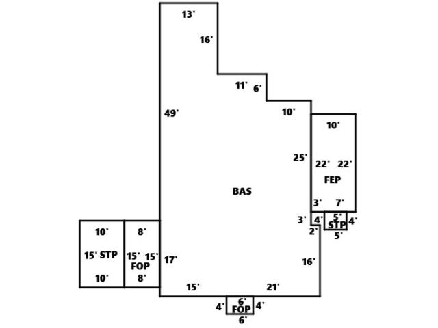 BUILDING DIMENSIONS BAS=W13S49S17E15E21N16W2N3N25W10N6W11N16Area:1880;FOP=W8S15E8N15Area:120;STP=W10S15E10N15Area:150;FOP=S4E6N4W6Area:24;FE EP=E3E7N22W10S22Area:220;STP=S4E5N4W5Area:20;TotalArea:2414