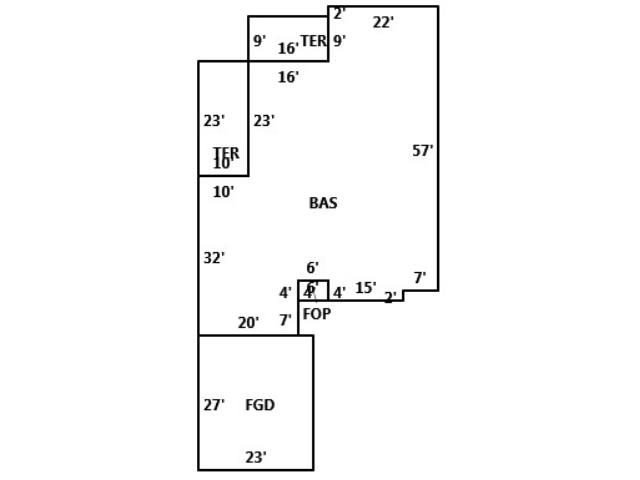 BUILDING DIMENSIONS BAS=W22S2S9W16S23W10S32E20N7N4E6S4E15N2E7N57Area:2418;TER=W16S9E16N9Area:144;TER=W10S23E10N23Area:230;FGD=S27E23N27W23Ar rea:621;FOP=E6N4W6S4Area:24;FUS=Area:1277;TotalArea:4714