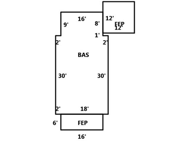 BUILDING DIMENSIONS BAS=W16S9W2S30E2E18N30W2N1N8Area:744;FEP=E16S6W16N6Area:96;FEP=E12N12W12S12Area:144;TotalArea:984