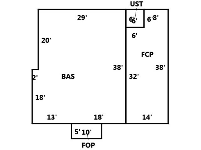BUILDING DIMENSIONS BAS=W29S20W2S18E13E18N38Area:1138;FOP=S5E10N5W10Area:50;FCP=E14N38W8S6W6S32Area:496;UST=W6S6E6N6Area:36;TotalArea:1720