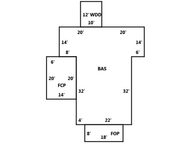 BUILDING DIMENSIONS BAS=W20W20S14E8S32E4E22N32E6N14Area:1392;WDD=N12W10S12E10Area:120;FCP=W6S20E14N20W8Area:280;FOP=S8E18N8W18Area:144;Total lArea:1936