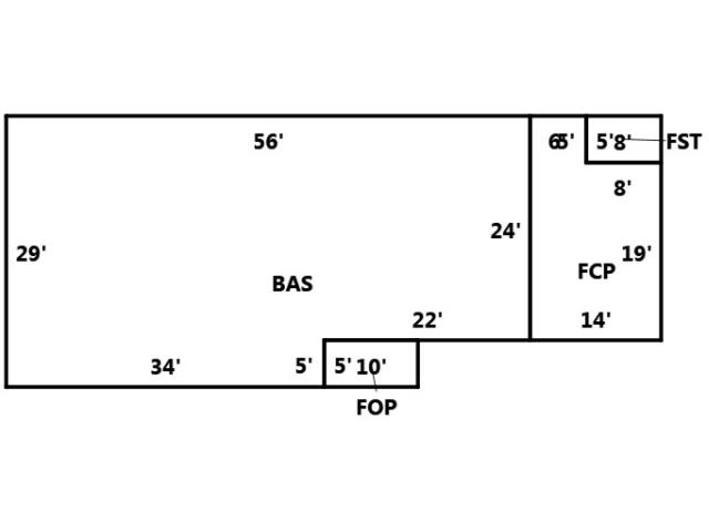 BUILDING DIMENSIONS BAS=W56S29E34N5E22N24Area:1514;FOP=E10N5W10S5Area:50;FCP=E14N19W8N5W6S24Area:296;FST=N5W8S5E8Area:40;TotalArea:1900