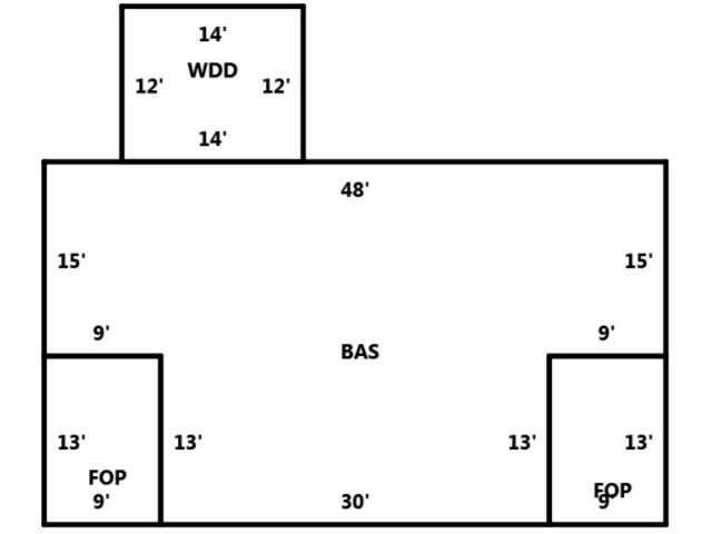 BUILDING DIMENSIONS BAS=W48S15E9S13E30N13E9N15Area:1110;FOP=S13E9N13W9Area:117;FOP=E9N13W9S13Area:117;WDD=N12E14S12W14Area:168;TotalArea:151 12