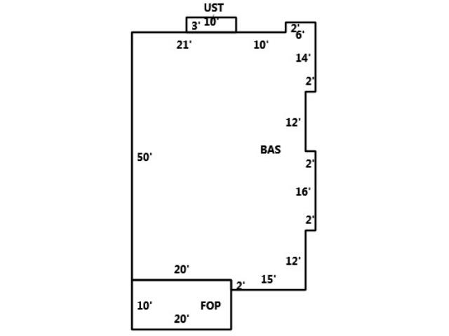 BUILDING DIMENSIONS BAS=W6S2W10W21S50E20S2E15N12E2N16W2N12E2N14Area:1848;UST=N3W10S3E10Area:30;FOP=S10E20N10W20Area:200;TotalArea:2078