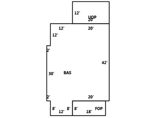 BUILDING DIMENSIONS BAS=W12S12W2S30E2S8E12N8E20N42W20Area:1500;FOP=E18N8W18S8Area:144;UOP=N12W20S12E20Area:240;TotalArea:1884