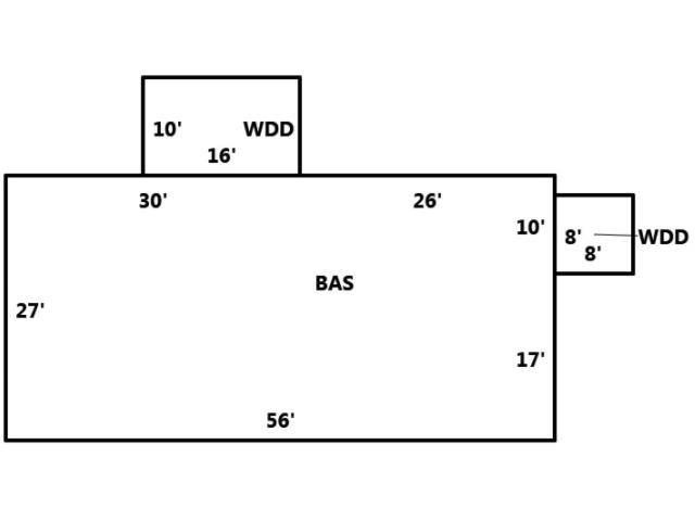BUILDING DIMENSIONS BAS=W26W30S27E56N17N10Area:1512;WDD=N10W16S10E16Area:160;WDD=E8N8W8S8Area:64;TotalArea:1736