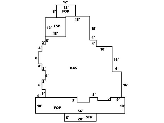 BUILDING DIMENSIONS BAS=W15S1S12W13S5W2S4W2S8E2S4E2S6W2S6E2S5E20S3E8N3E5S2E8N2E7N16W6N16W10N4W4N15Area:1919;FOP=N3W20W6S10E56N10W9S2W8N2W5S3 3W8Area:520;STP=S5E20N5W20Area:100;FUS=Area:1867;FOP=S7W6S1W6N8E12Area:90;FSP=N12W13S12E13Area:156;TotalArea:4652